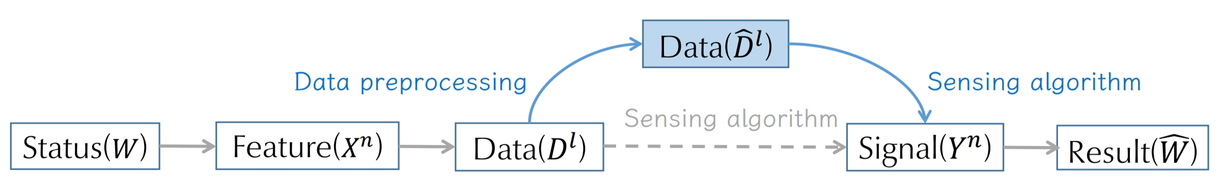 where \(\mathbf{Y}\) is the received signal, \(\mathbf{X}\) is the transmitted signal, \(\mathbf{H}\) is the channel status, and \(\mathbf{N}\) is the noise that might be introduced by sensed objects.
